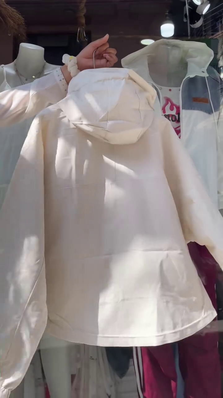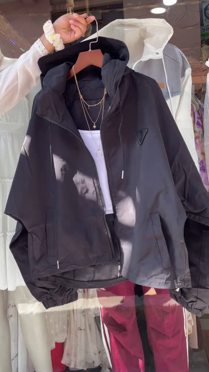 & Free ShippingStay cozy and stylish with this beige hooded jacket ensemble, designed for women who love functional fashion with a touch of elegance. Featuring a zip-up front, white drawstrings, and elastic cuffs, this jacket is layered over a classic white tank top and accessorized with gold necklaces—perfect for boutique displays, catalog shoots, or WhatsApp fashion campaigns.