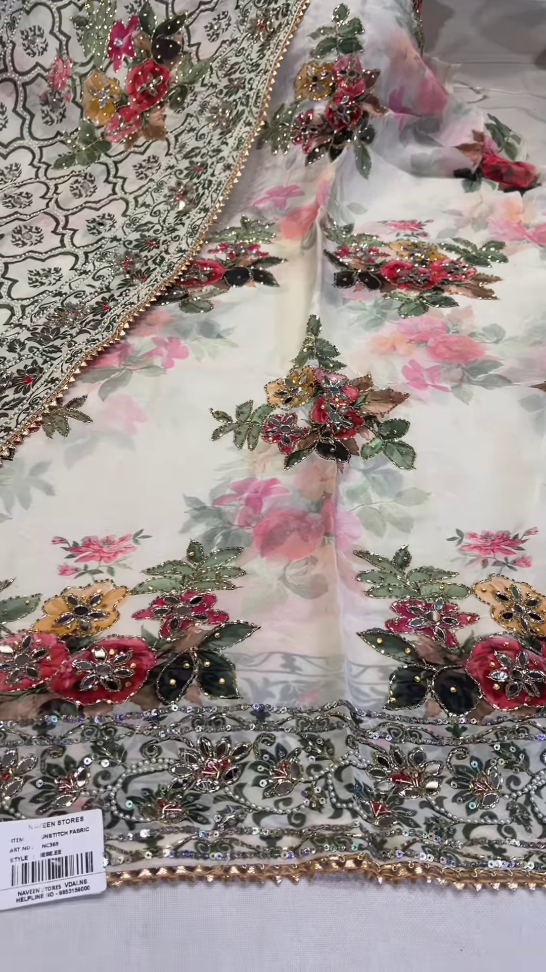 The Dupatta (Scarf): A true statement piece, the wide silk dupatta features matching scalloped embroidery along all four borders. The generous length allows for versatile styling—drape it over one shoulder for a classic look or across both arms for a more formal, majestic appearance.