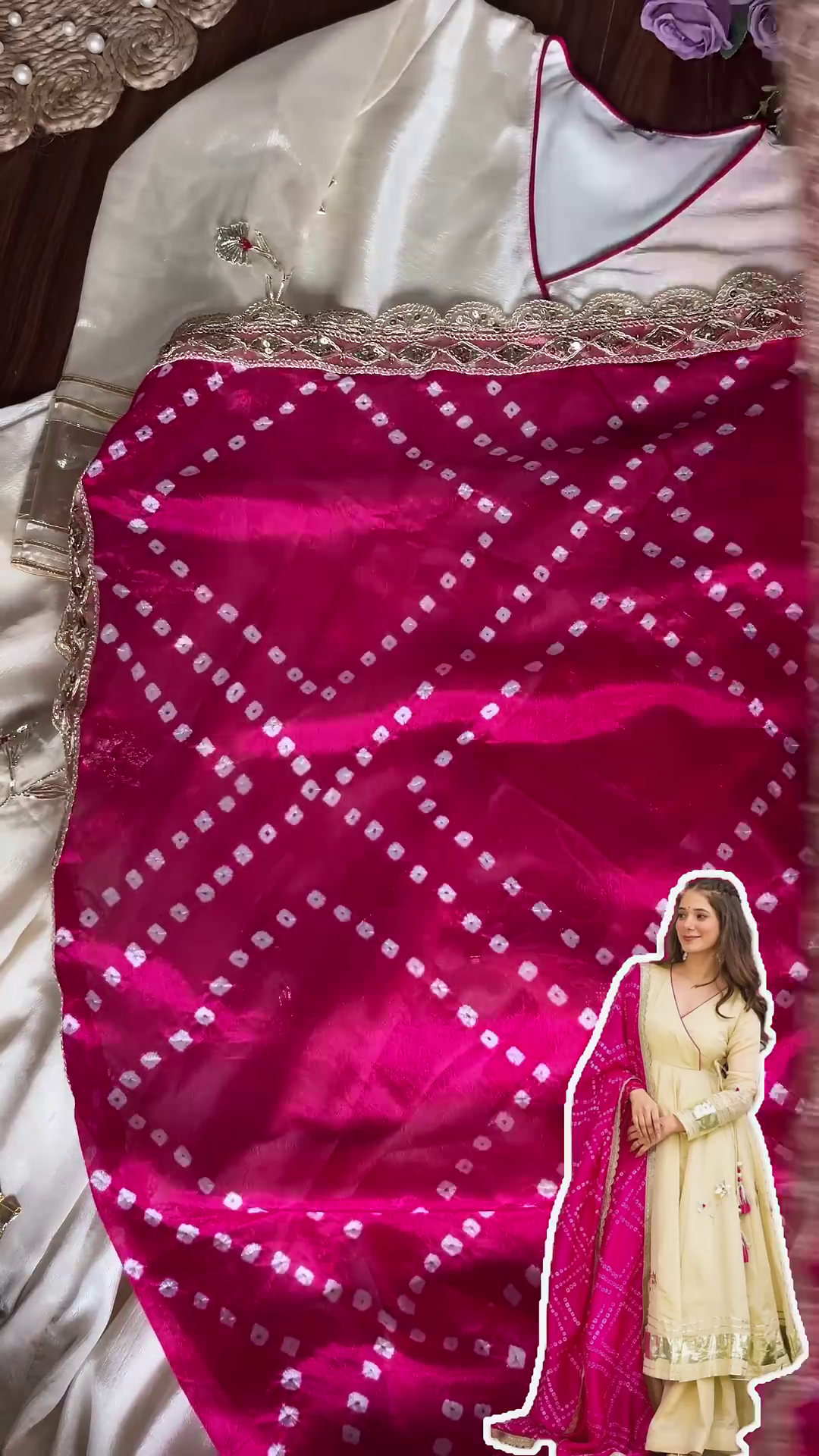 Contrast Color: Vibrant Rani Pink (Dupatta) with traditional Bandhani print.