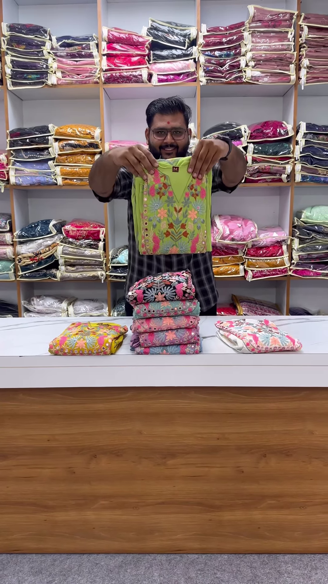 The collection features a range of base colors, including lime green, mauve, navy blue, and teal, ensuring a perfect choice for every skin tone and occasion. Each kurta is adorned with similar hand-stitched floral patterns on the bodice, creating a cohesive boutique-quality look. The mirrors are securely embedded with precise thread-work, providing a dazzling reflectiveness that makes the wearer glow during daytime functions or evening gatherings. This ornate detailing often eliminates the need for heavy necklaces, as the garment itself frames the face with an artistic finish.