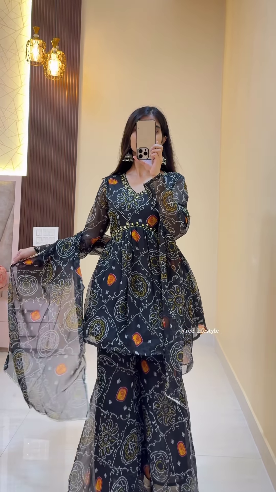 The person in the image pairs the outfit with a white handbag and elegant earrings, offering a modern twist to traditional styling. This ensemble is ideal for catalog photography, influencer campaigns, or WhatsApp promotions.